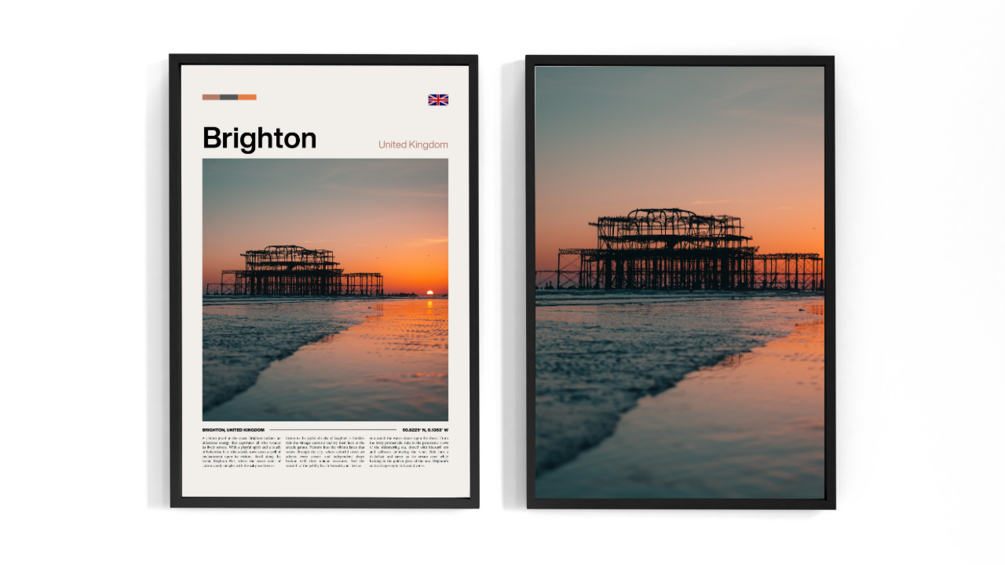 Celebrate your favourite destinations with our charming Brighton, United Kingdom travel prints. Whether you want to reminisce about past journeys or ignite your wanderlust for future adventures, our prints offer visually captivating art that will enhance any home.