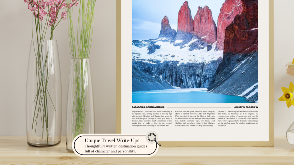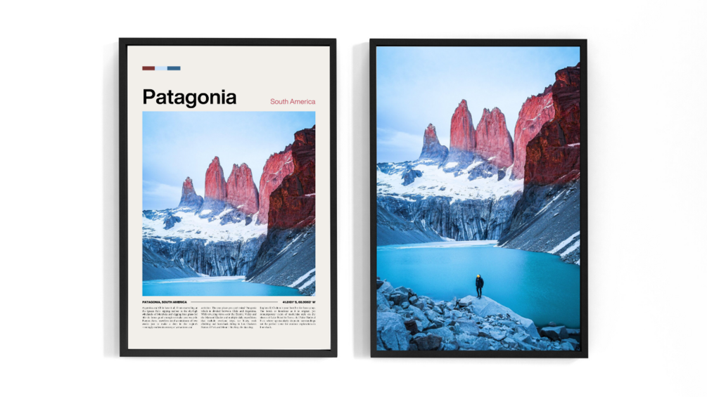 Celebrate your favourite destinations with our charming Patagonia, South America travel prints. Whether you want to reminisce about past journeys or ignite your wanderlust for future adventures, our prints offer visually captivating art that will enhance any home.